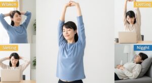 - 休日の過ごし方を工夫しながら、平日とのリズム差を少しずつ縮めていくことで、寝つきやすさ・目覚めやすさの両方を整えていくことが期待できます。