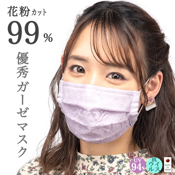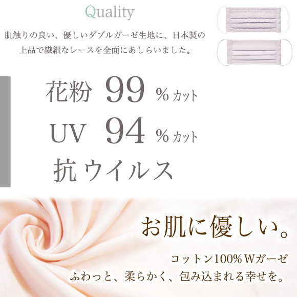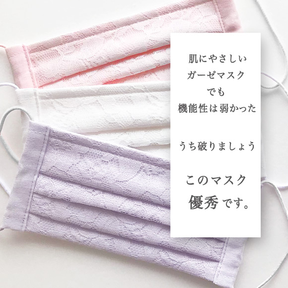 優秀ガーゼマスク(無地)に、繊細な日本製レースを全面にあしらい