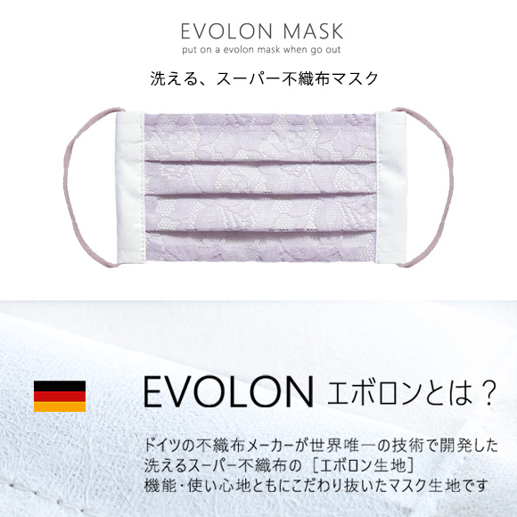 新世代!洗える不織布マスク!このエボロンマスクは、新世代素材による、使い捨てない洗える、不織布マスク。不織布マスクのような見た目に、軽いつけ心地。しかし、なめらかで肌触りも優しく、洗えば洗うほど、柔らかく進化するスーパーな生地!綿などの織り生地に比べて400倍の吸水速乾性があり、通気性がよく、ムレ、ベトつきにいので着け心地も抜群。強度、耐久性も◯大人サイズもあり、親子でリンクコーデも◎
