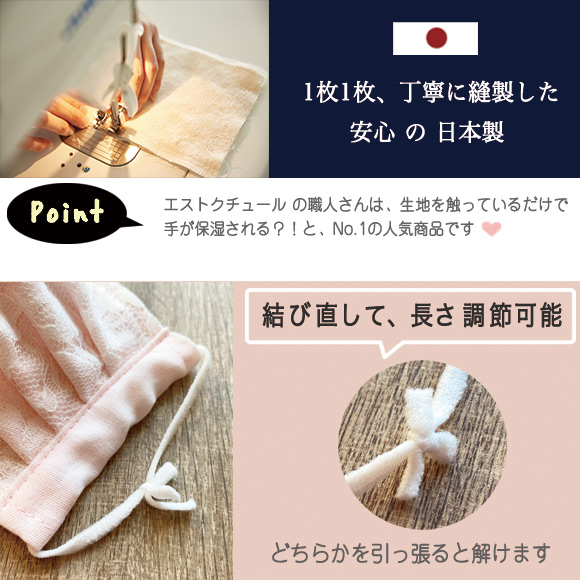 1枚1枚心を込めて手作りしていますので、サイズが多少異なる場合があります。大きさ・サイズ表記はあくまで目安です。必ず肌が荒れないという商品では御座いません。天然成分がお肌に浸透するというような効果は御座いません。手洗いを推奨しておりますが、洗濯機で洗う際には、1枚ずつネットに入れて洗ってください。ご使用前に洗ってからご使用ください。ゴムは結び直して長さを調節してください。商品画像はカメラで撮影し、可能な限り色合わせを行なっておりますが、ご使用のモニター環境により実際の色味と異なる場合もございます。予めご了承ください。