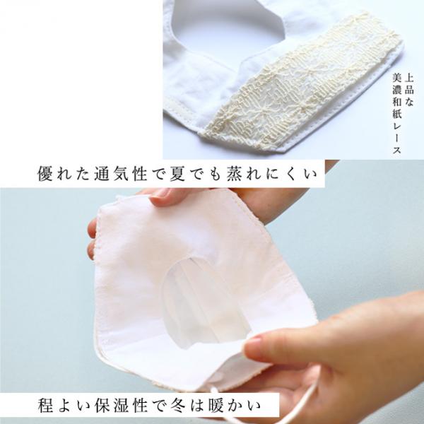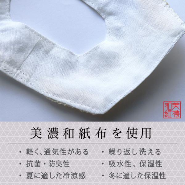 ・肌に触れる部分に美濃和紙布を使用しているため、不織布マスクによる肌荒れに困っている方でも肌荒れがおきにくくなります。